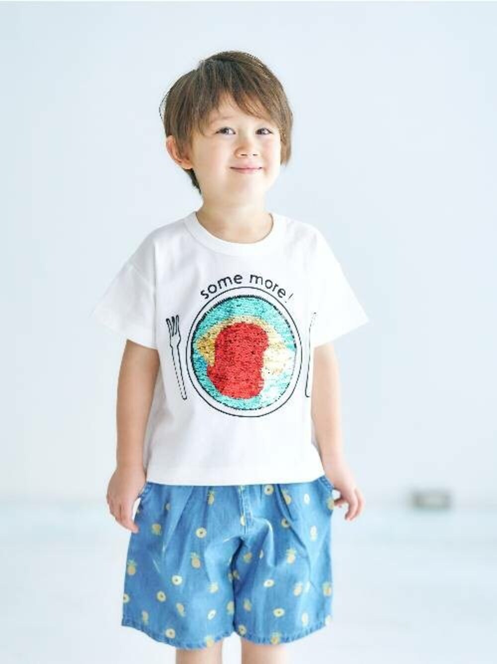 F.O.OnlineStore(F.O.Online Store)のTシャツ/カットソー「スパンコールきょうりゅう・食べ物Tシャツ」を使ったコーディネート
