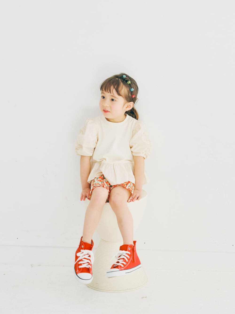F.O.OnlineStore(F.O.Online Store)のTシャツ/カットソー「シャーリングパフスリーブペプラム半袖Tシャツ」を使ったコーディネート