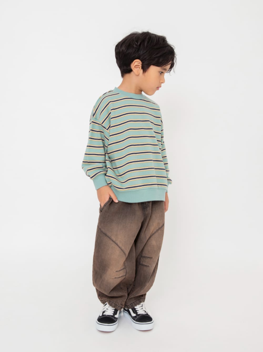 F.O.OnlineStore(F.O.Online Store)のスウェット「【WEB限定/ジュニア対応】無地ボーダートレーナー」を使ったコーディネート