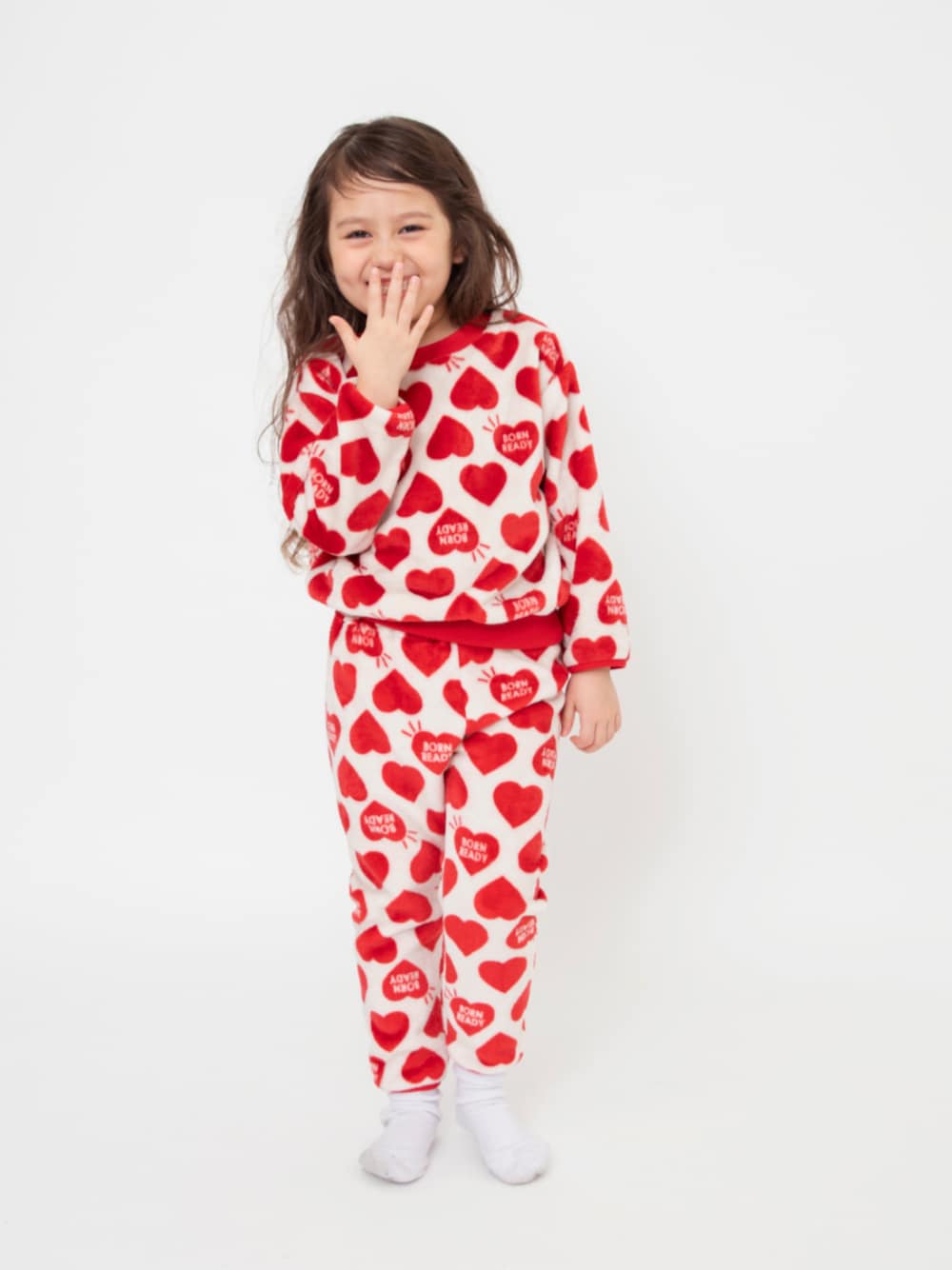 レッド系のルームウェア/パジャマを着用したキッズの秋コーディネートの1枚目の写真