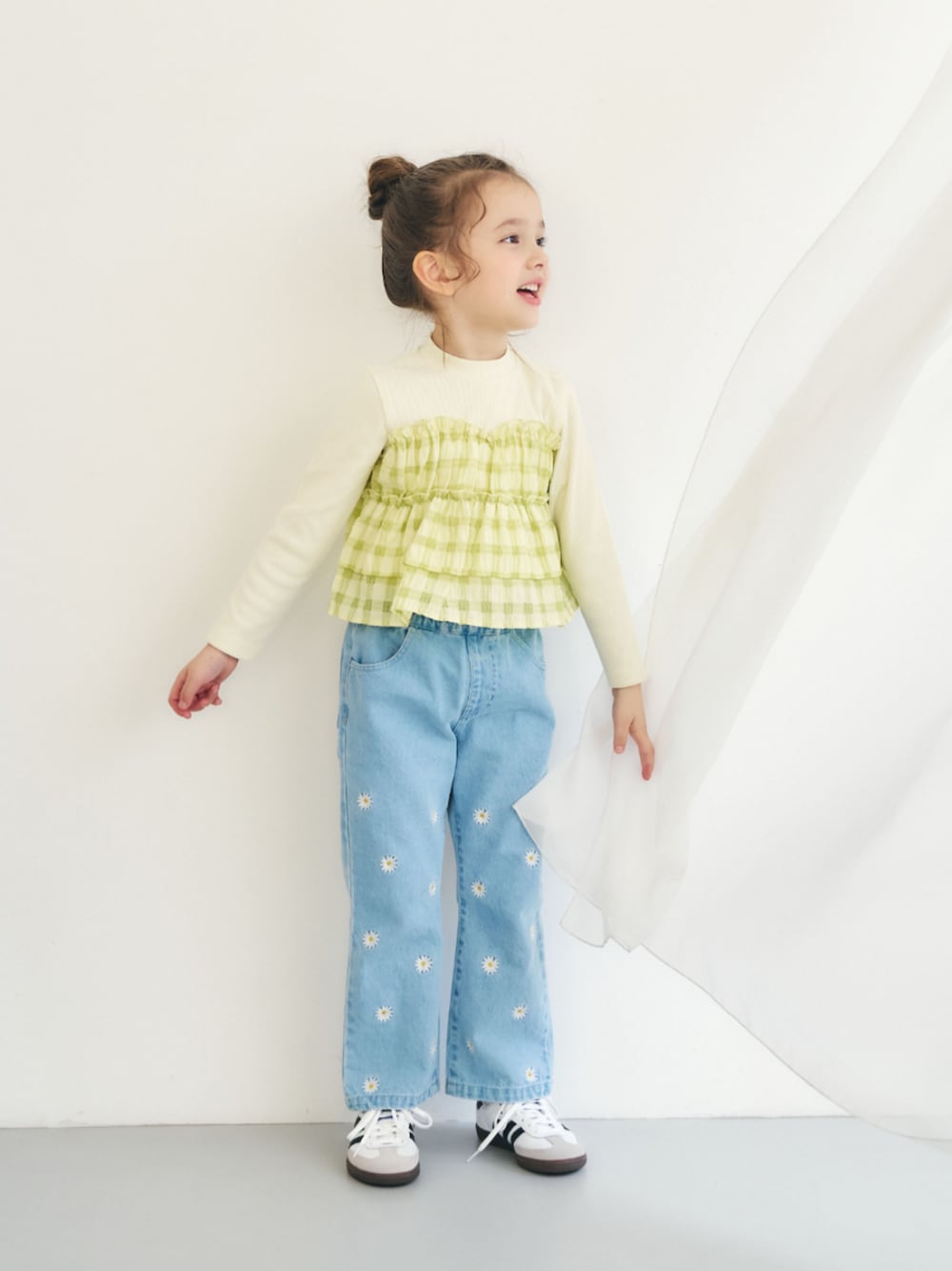 F.O.OnlineStore(F.O.Online Store)のデニムパンツ「ハート・デイジー刺繍きゅんパンツ_ジュニア対応」を使ったコーディネート