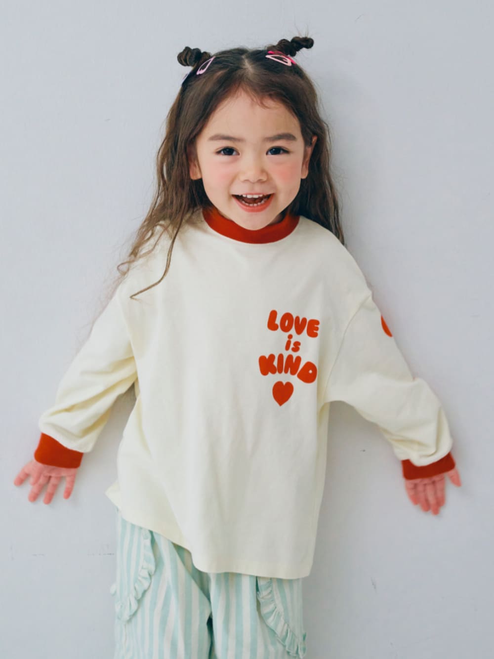 F.O.OnlineStore(F.O.Online Store)のTシャツ/カットソー「ハートデザイン長袖Tシャツ_ジュニア対応」を使ったコーディネート
