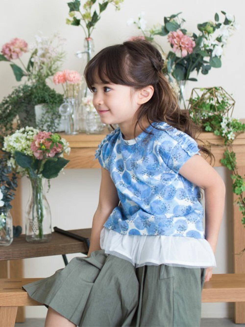 F.O.OnlineStore(F.O.Online Store)のチュニック「/花水彩ドット&トリチェック2テキスタイルチュニック」を使ったコーディネート