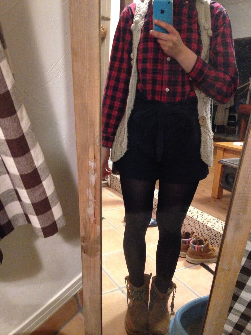 シャツ:GAP ショートパンツ:PAGEBOY ベスト:RETRO GIRL ブーツ:RIN ホワイトデー♡ たくさん義理チョコもらいましたヽ(´o`;