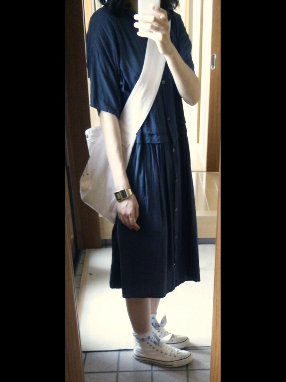 ワンピース:mao made 靴:コンバース バッグ:theaterproducts 靴下がミントデザインズのパクりっぽい柄なのがポイント。