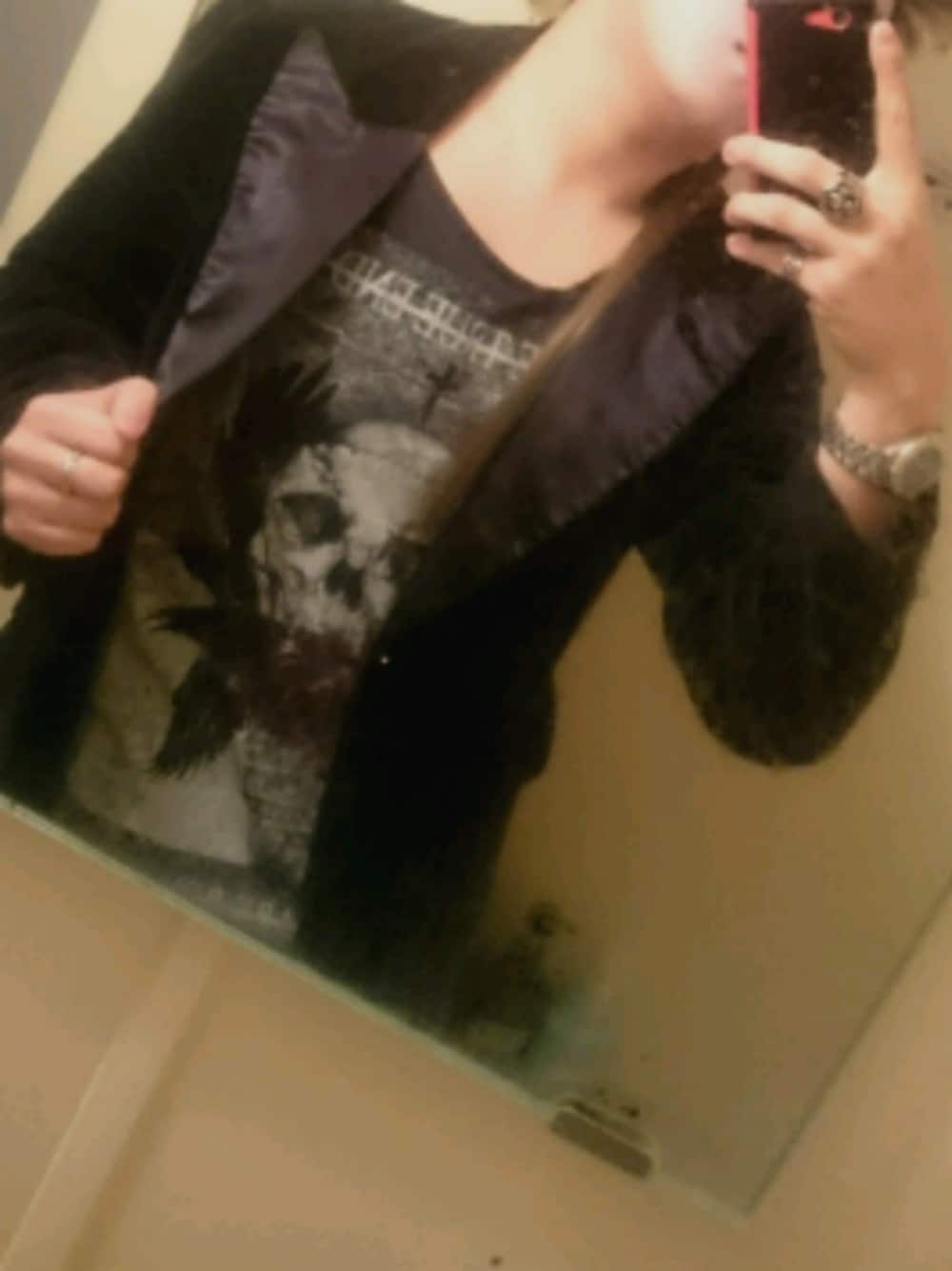 新年1回目! FUGAのピークド?ラペル、 ベロア素材のジャケットに H&MのV系みたいなwカットソーでV系風のファッションにしてみました! 気分転換にエクステも付けてます笑