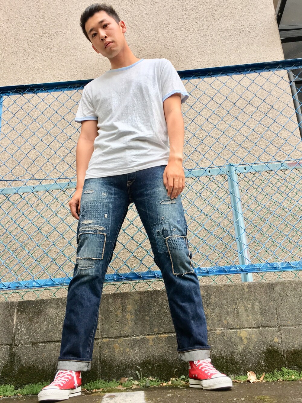 『佳いモノを、シンプルに』 いつもたくさんのいいねとお気に入り、そしてフォロー頂き本当にありがとうございます! 今日は前回の宣言通り、ジーンズコーデを紹介していきます(°▽°) 今回は変わり種のパッチワークジーンズを中心にラフな感じで纏めてみました。 ポイントはパッチワークジーンズが主役なので、トップスはプレーンなアイテムをチョイスしてある点です。 あとロールアップすることで、ボトムスを更に際立たせつつ赤のコンバースを主張させています。 赤いコンバースの汎用性って神レベルだと思う。 ただロールアップはもっと左右非対称にした方が面白かったかも∑(゚Д゚) それではまた次回のコーディネートで(^o^) 以下アイテム紹介 【トップス】 フィルメランジェのコットンTシャツ。栄にあるセレクトショップpelicanにて購入。上質なコットンを使用した着心地と首元のサックスブルーがオシャレな1枚。ここのトップスは来年からも買い足していきたい。 【ボトムス】 KUROのパッチワークジーンズ。KURO NAGOYAにて購入した一本。普通のダメージジーンズとはまた違った雰囲気がカッコいい。KUROのジーンズは本当にオススメしたい。 【シューズ】 コンバースのオールスター。色を足したい気分の時にはコレを履いておけば間違いない。ちなみに今回履いてるのはmade in japanのモデル。使いやすいアイテムならより佳いモノを選ぶのがMOON流。 よろしければいいね、お気に入り、フォローお願いします!