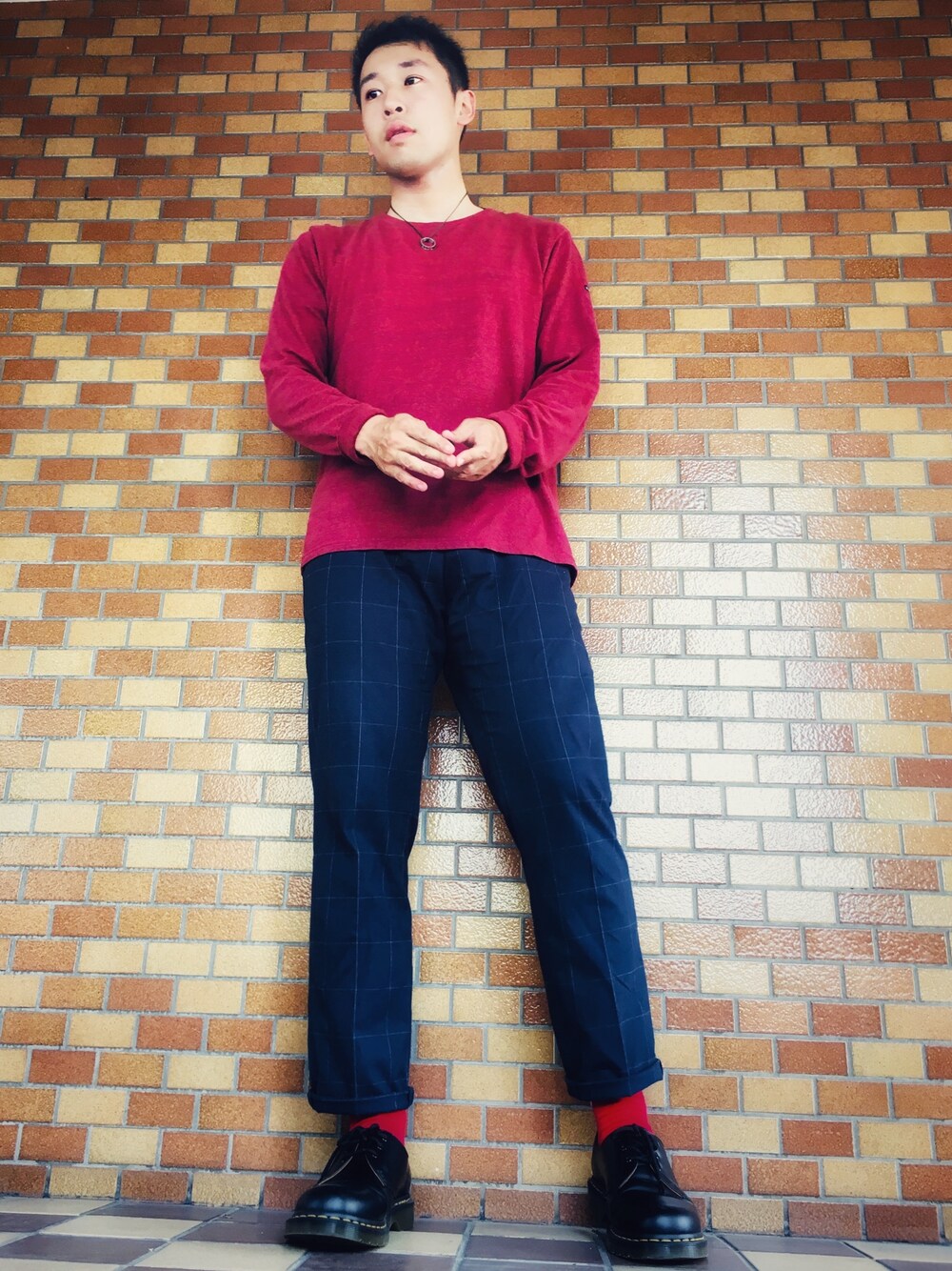 『佳いモノを、シンプルに』 いつもいいね、お気に入り、フォロー頂き本当にありがとうございます! 台風が過ぎ去り秋の訪れを身近に感じ始めたMOONです。 秋か... 秋といえば... そうですね『秋服準備はじめました』ですね笑笑 ということで今回は『秋の訪れ』をテーマにコーデを組んでwearセンバツに参戦することにしました! 秋らしいカラーのフィルメランジェの長袖Tシャツを中心にスラックスとマーチンできれいめに纏めてみました。 ただきれいめなだけだとつまらなかったので、ロールアップから赤ソックス見せとシルバーリングネックレスで抜け感を演出してるところがポイントかな。 ちなみにこのネックレスは大切だった人から指輪を貰うはずがその人が適当にサイズを測って買ってきたために、大きすぎてチェーンを通してネックレスとして使用しているという経緯があります(゚∀゚) それではまた次回のコーディネートで(^o^) 以下アイテム紹介 【トップス】 フィルメランジェの長袖Tシャツ。霜降りのボルドーカラーがシンプルにお洒落な一枚。 【ボトムス】 コムサコミューンのスラックス。格子柄のデザインがきれいめの中にも静かに主張してくれるアイテム。 【シューズ】 お馴染みドクターマーチンの3ホールブーツ。シンプルにめっちゃカッコいい。ブーツに初めて挑戦するならコレ買っておけば間違いないと断言できるアイテム。 よろしければいいね、お気に入り、フォローお願いします!