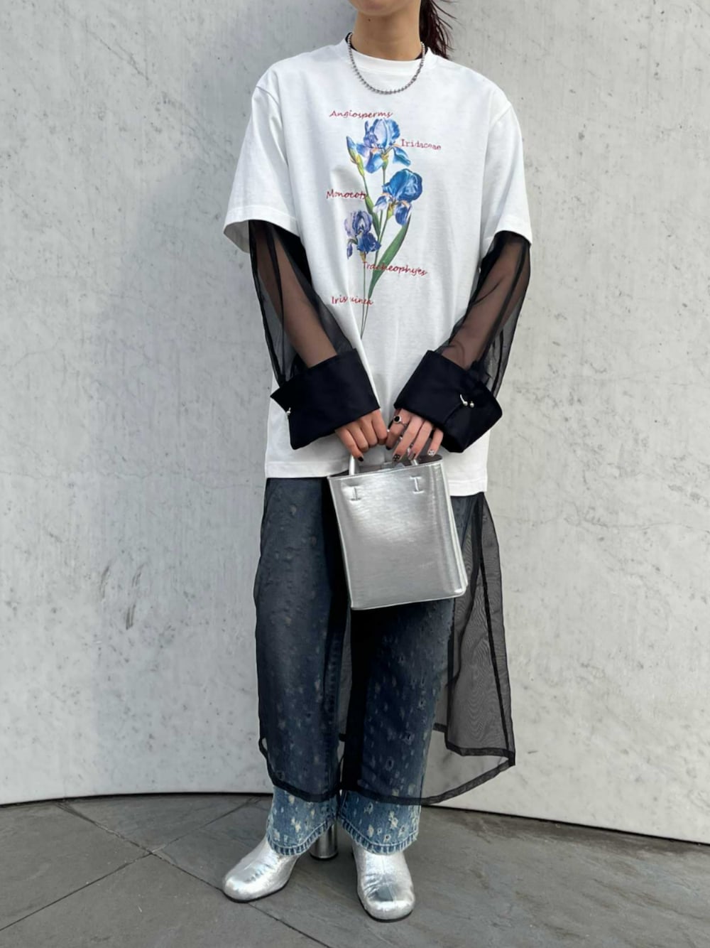 ECスタッフ(ELLEgirlメイン)のTシャツ/カットソー「アイリスプリントチュニックTシャツ【ELLEgirl/エルガール】」を使ったコーディネート