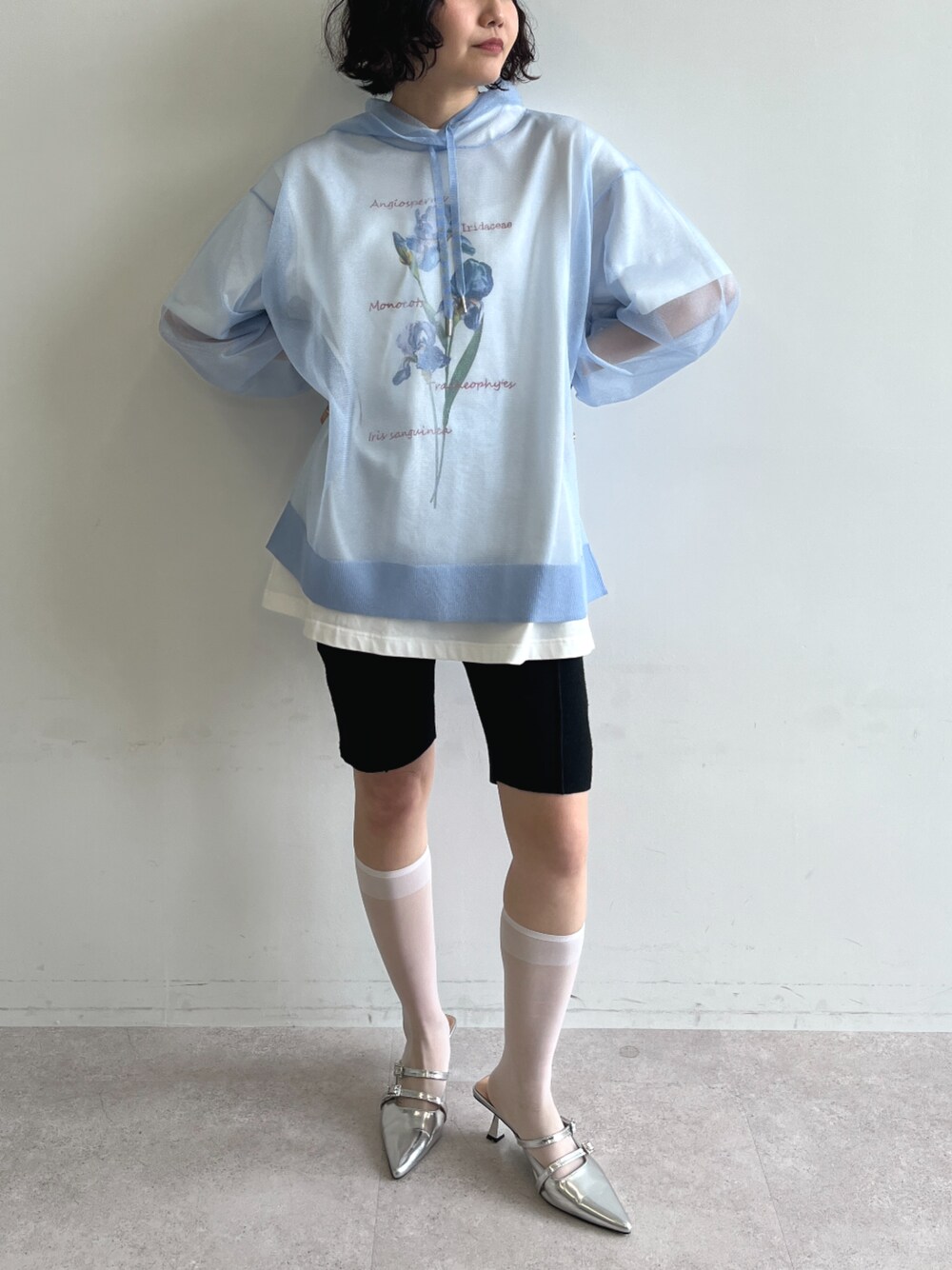 ECスタッフ(ELLEgirlメイン)のTシャツ/カットソー「アイリスプリントチュニックTシャツ【ELLEgirl/エルガール】」を使ったコーディネート
