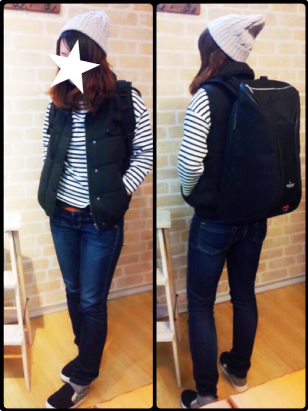 ボーダーとダウンベストはすごく合わせやすいですよね(((o(*゚▽゚*)o))) 動きやすいデニムパンツとの相性もとてもいいので王道なコーデだと思います♪ 早く暖かくなって、春コーデ楽しみたいですね☆