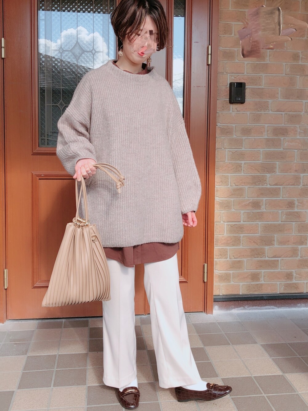 新年初投稿♡ なかなかコーデ撮る機会がなく😭久々〜 最近はフレアパンツとフラットシューズの組み合わせがラブ❤️ しまむらのプリーツバック、本当に合わせやすい✨