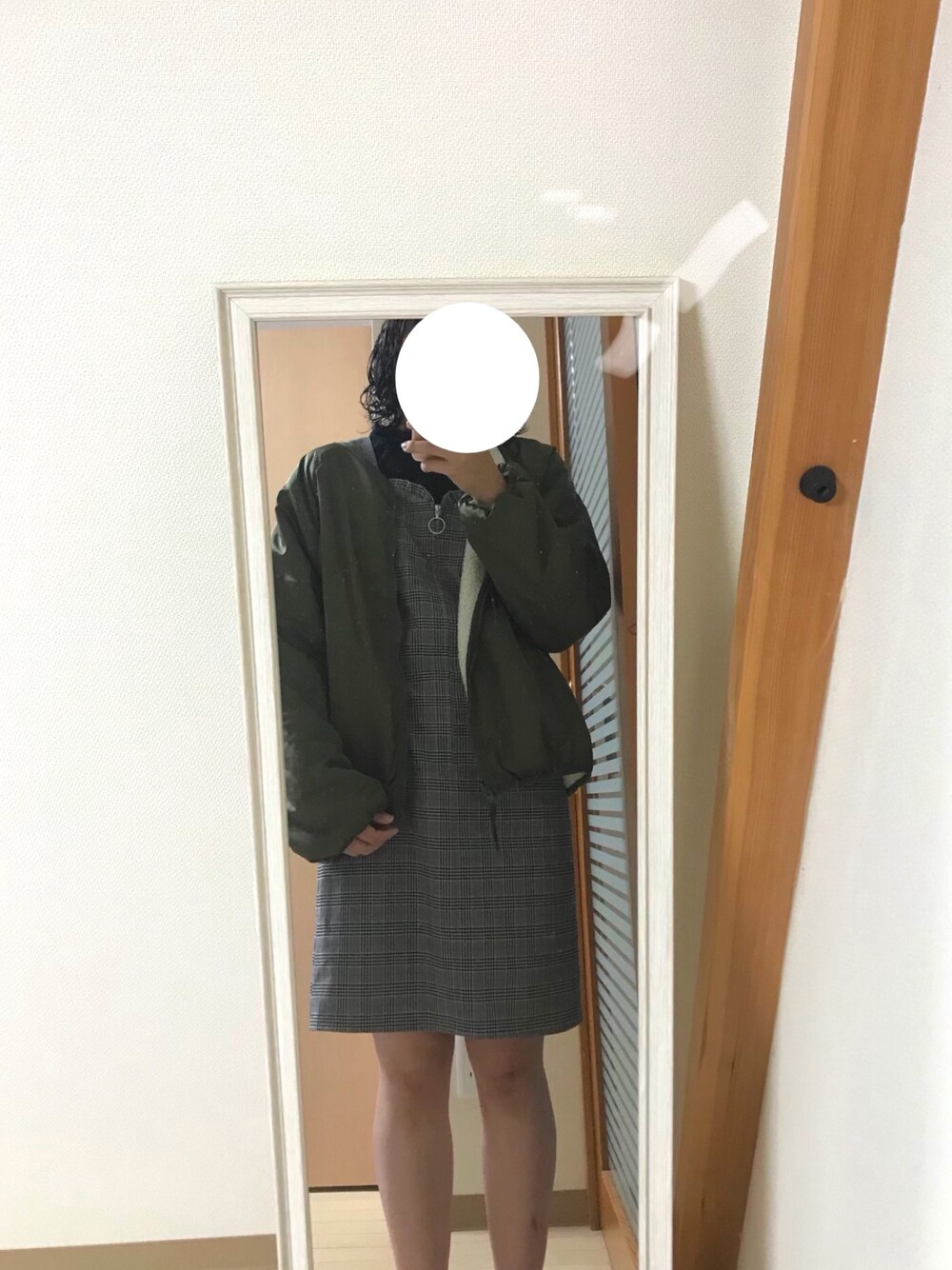 かわいいジャンパースカートだからこそ、ブルゾンを合わせてみました ブルゾンはリバーシブルで、反対側はボアになってます これからの季節に重宝しそうです