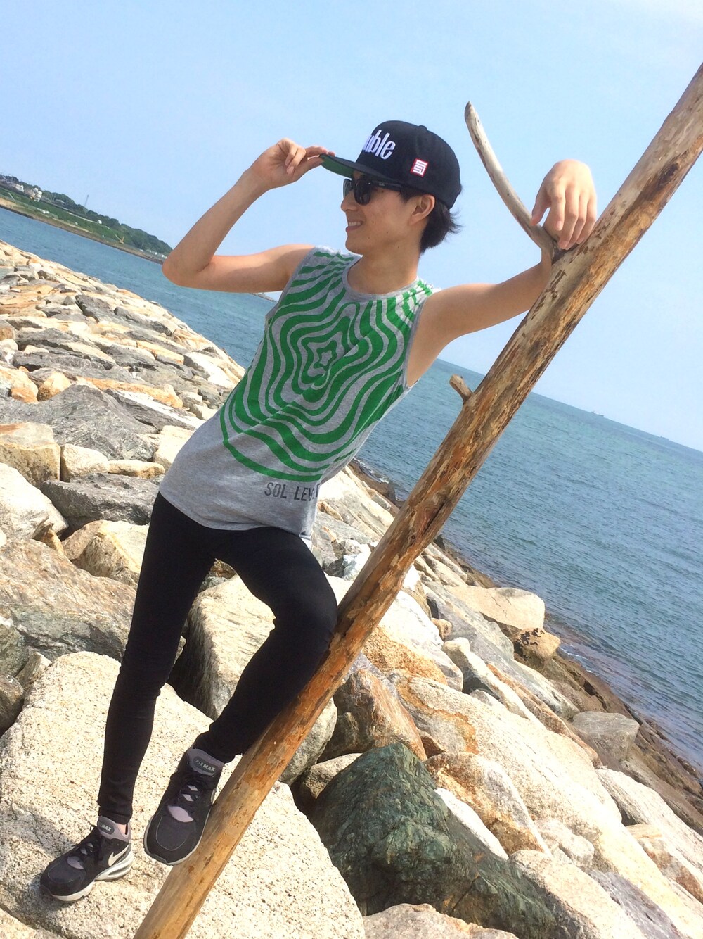 今日のコーデはstreet×surfで仕上げてみました😎 UNIQLOのタンクトップはレデイースを着用しました😄 靴は前回のコーデでも使用したairmax95をパンツはasosの黒スキニーをチョイスしました✌️