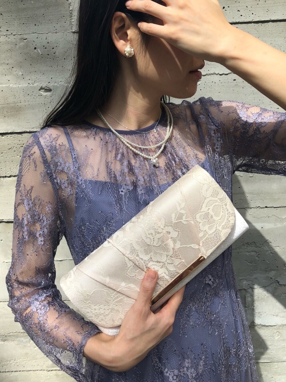さりげないレース合わせでコーディネート❤︎ こちらの総レースドレスはWEB限定❤︎ くすみパープルはトレンド色で1番人気のドレスなんです❤︎ ※今日までタイムセール開催中
