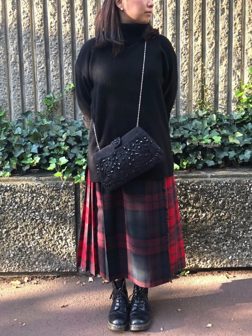 formformaSTAFFのクラッチバッグ「ビーズ刺繍パーティークラッチバッグ」を使ったコーディネート