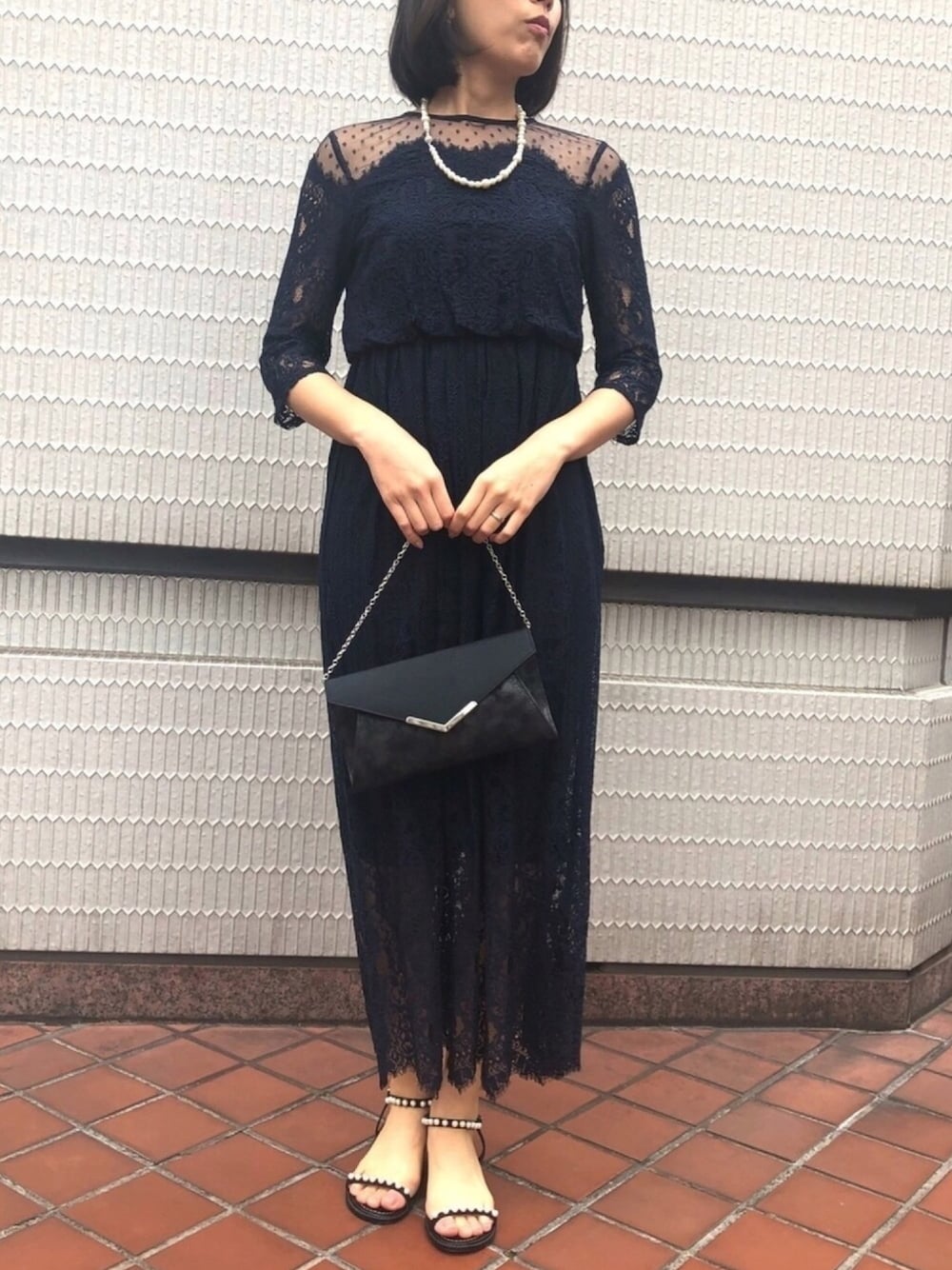 formformaSTAFFのドレス「chaco/レース×ドットチュール セミロングドレス」を使ったコーディネート