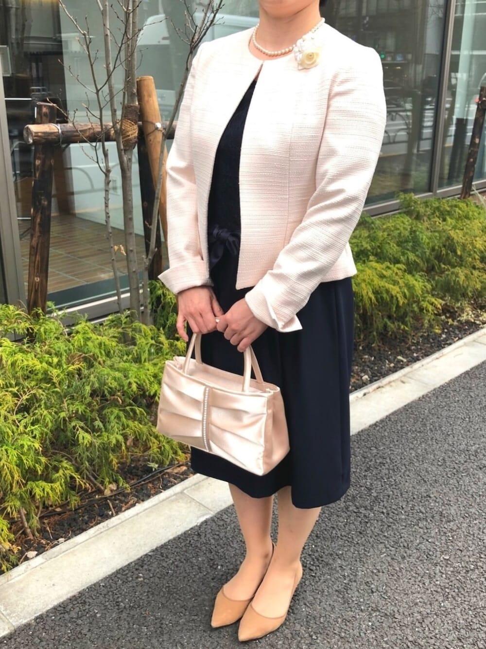 formformaSTAFFのネックレス「【慶弔両用】貝パール一連ネックレス《7mm玉》/喪服・礼服/ブラックフォーマル/パーティー」を使ったコーディネート