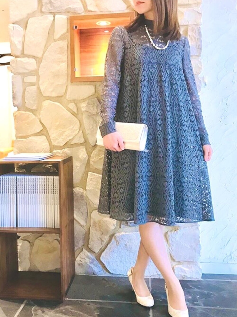 formformaSTAFFのドレス「【kaene】総レースバックパールボタンワンピース」を使ったコーディネート