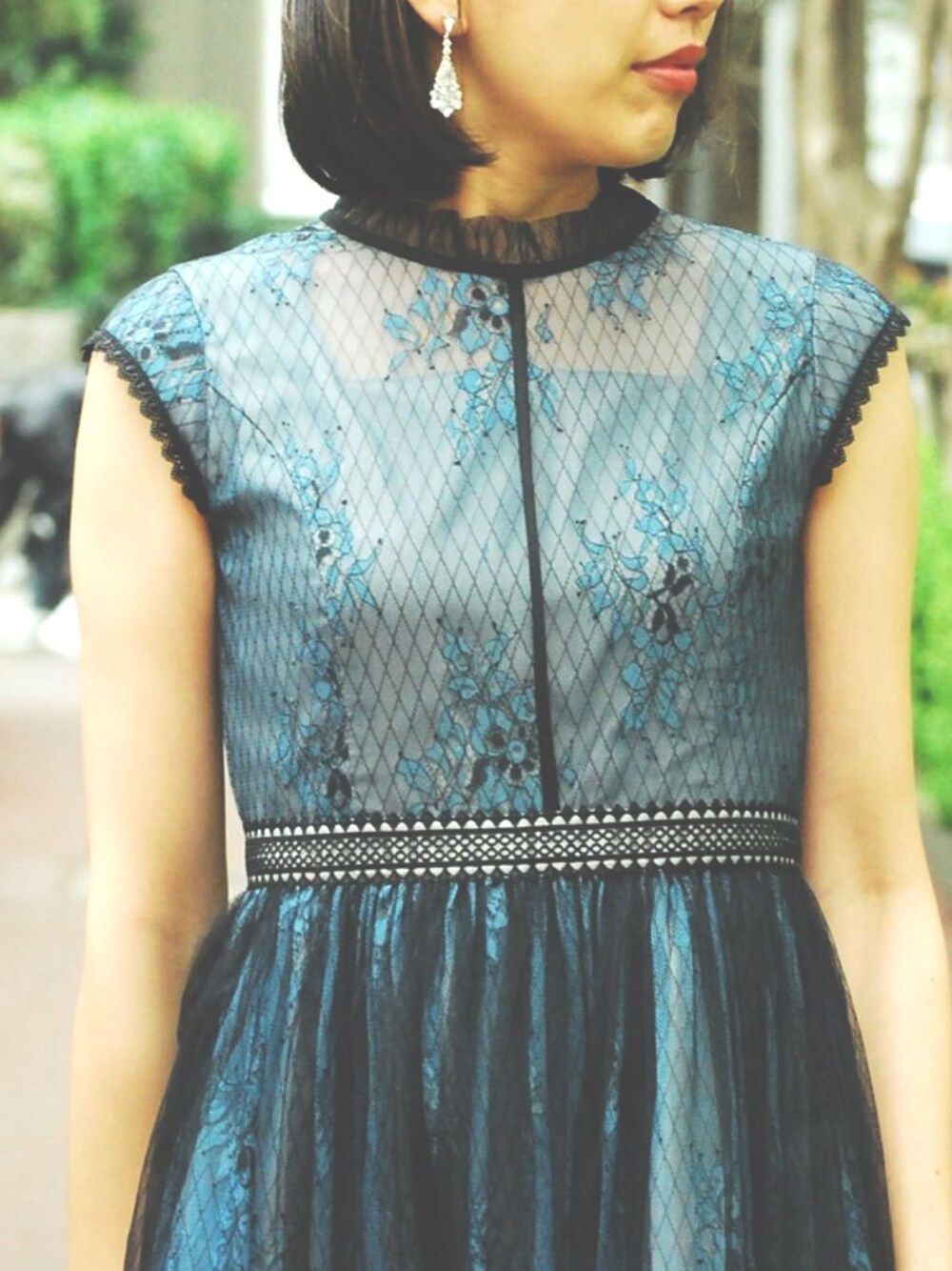 ダイヤチュールが可愛い❤︎ ブルーのドレス❤︎ イヤリングもコーディネートしてパーティーや結婚式などの特別な装いに❤︎