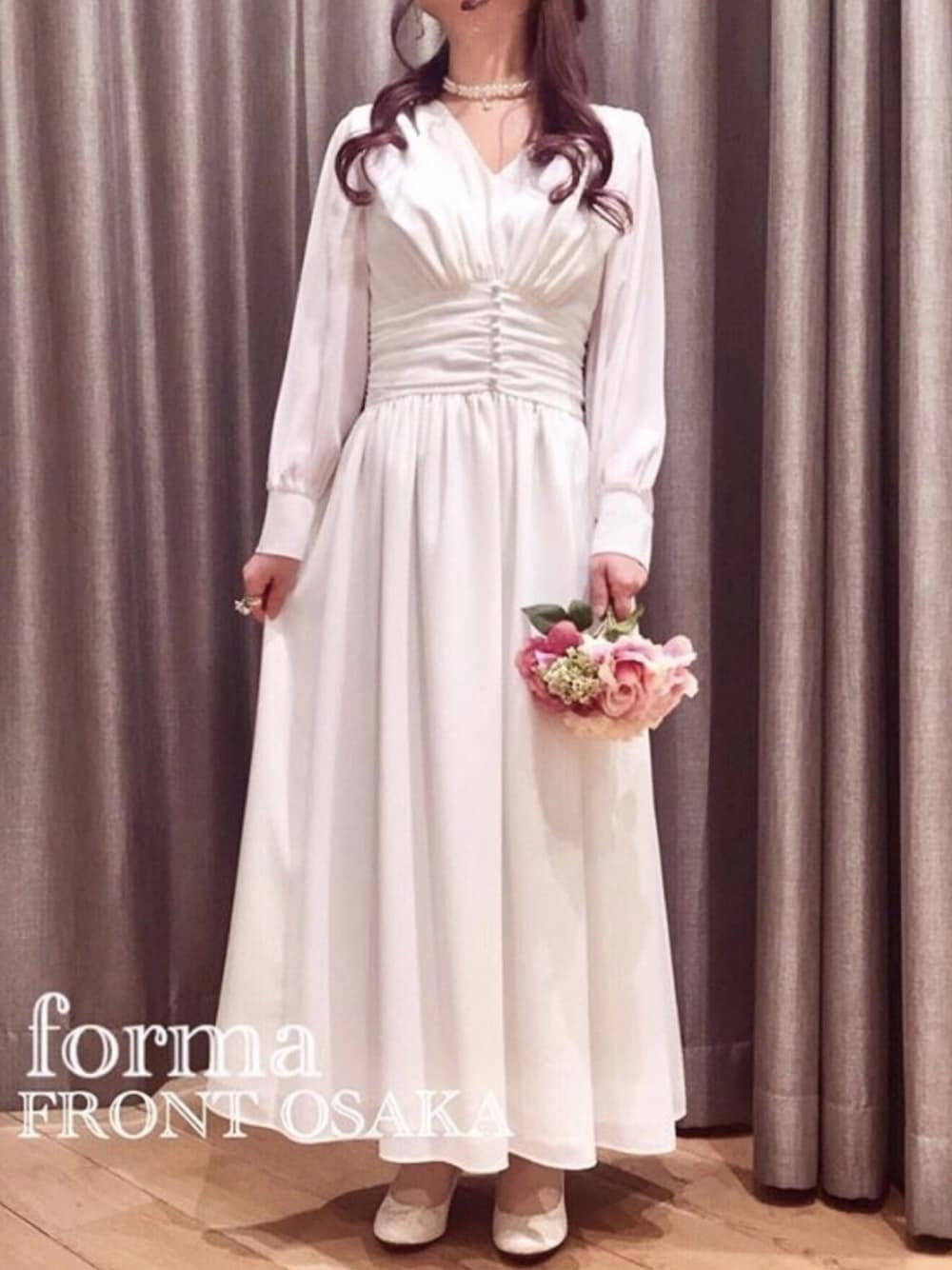 formformaSTAFFのドレス「kaene/パフスリーブセミロングウェディングドレス」を使ったコーディネート