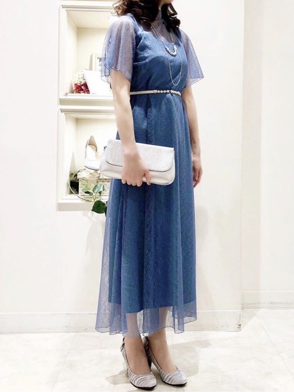 夏らしいドレススタイル❤︎ サックスブルーのドレスにグレーやシルバー系の小物合わせで❤︎
