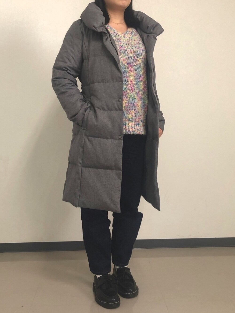 【身長別スタッフコメント】 スタッフH ※身長153㎝『今回の着用サイズ:9号』 ※普段の着用サイズ:M /L(9号もしくは11号) ■着用コメント ベルトなしではカジュアルにも着れて、ドレスなどキレイめ合わせする際はベルトを使って着用すれば温かいうえにキレイ見えするのが良い。軽いので着用シーンも増えそう。 ■どのサイズを選ぶか 9号