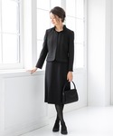 【セットアップワンピースver】 スタッフM ※身長159㎝『今回の着用サイズ:9号』 ※普段の着用サイズ:S/M(9号) ※試着の際に気になる事…腕が長めなので9号で袖丈が短い時がある ■丈感…膝はしっかり隠れる。丈感はふくらはぎくらい。 ■首周り…ゆとりあり。 ■胸周り…ゆとりあり。 ■袖長さ…手首くらい。腕を上げたり動いたりすると短く感じる長さ。 ■二の腕周り…ゆとりあり。 ■どのサイズを選ぶか…9号 ■コメント 腕が長く普段試着の際に袖丈が短い事がある。これは少し短く感じた。スカートデザインは少しタイトな印象で全体的にコンパクトに見えて綺麗に着こなせると思った。お腹まわりが楽で着心地が良かった!ワンピースは一般的な安心丈。素材の良さを感じられる上質なブラックフォーマルの印象で喪主としての立場(正喪服)として安心して着用出来るスーツだと感じた。
