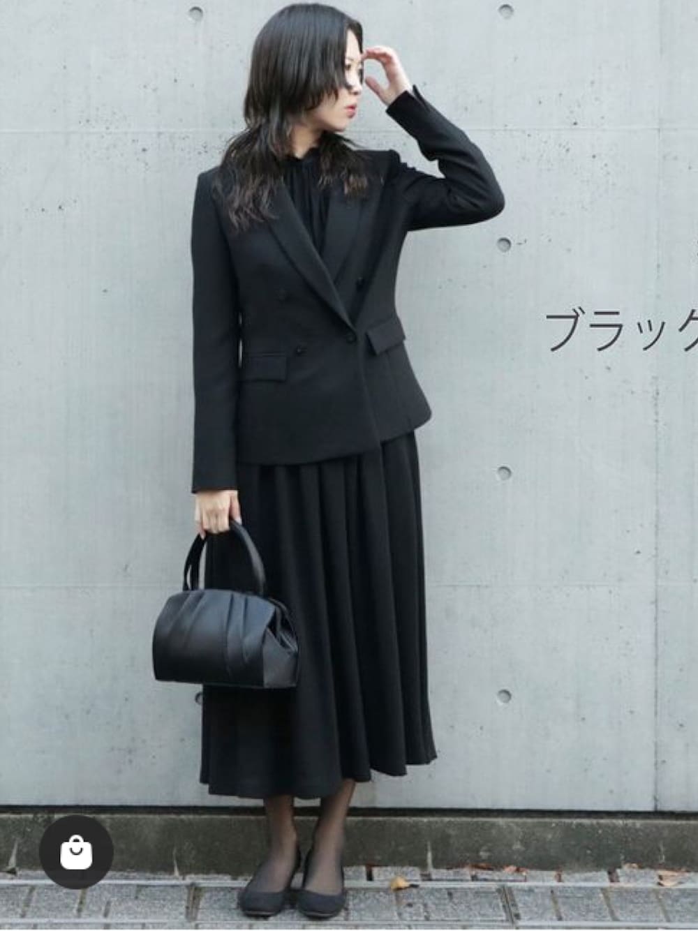 formformaSTAFFのスーツセット「ダブルボタンテーラードジャケット&ロングフレアワンピース ブラックフォーマルスーツ」を使ったコーディネート