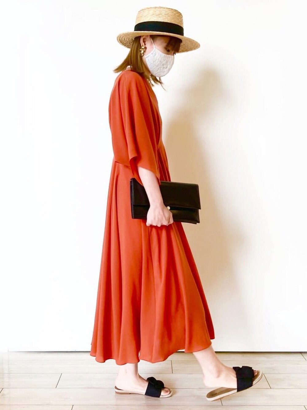 Demikitteの360°美シルエットワンピース♡ 今回は、サンダルと麦わら帽子でカジュアルダウンしてお出かけスタイルに♪ 合わせるシューズやアクセサリーでしっかりフォーマルシーンにも着用していただけます♡
