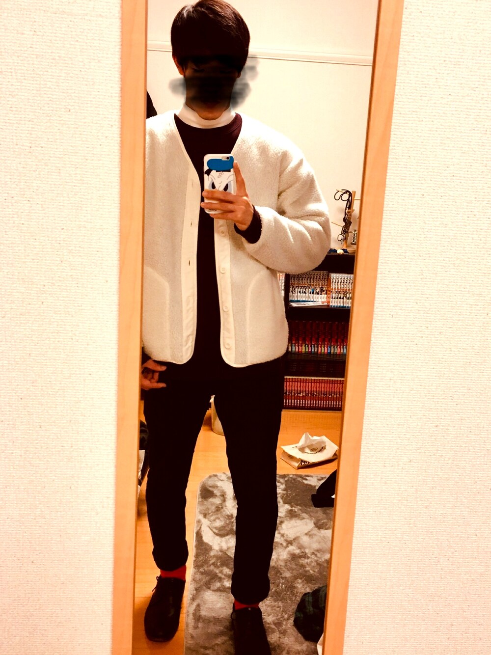 GUのボアフリースカーディガンに インナーはHAREのモンスタースウェット ボトムスは黒スキニーで合わせました( ̄∀ ̄) スウェットと靴下の色を同系色にしてみました! ボアはモコモコで可愛いし暖かいね(´∀`*)
