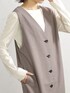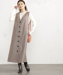 前後どちらでも着用でき、ボタンを開けてロングジレとしてもコーディネートできる汎用性の高い一枚。 ジャンパースカートとしてフェミニンに、またジレとしてハンサムにと多彩なスタイリングを楽しめます。