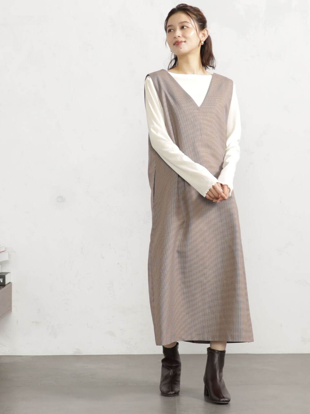 FOUND GOOD(FOUND GOOD)のワンピース「3WAYウールライクJSK」を使ったコーディネート