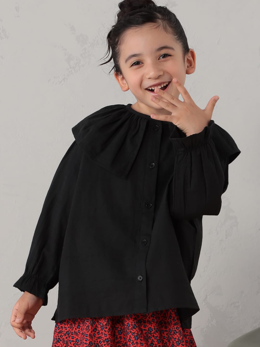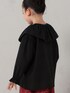 フリルの襟元と袖口がフェミニンな雰囲気です。 デニムパンツ、フレアスカートのどちらも好相性です。 一枚でトップス風に着こなすほか、軽い羽織りとして使うのもおすすめ。