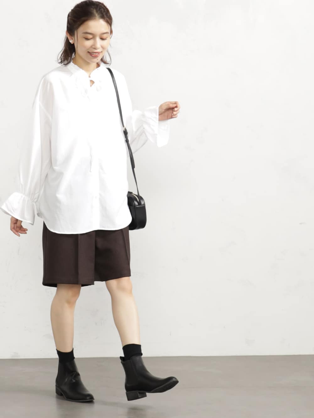 ブラウスは前後で着用できる2WAYで、気分に合わせて雰囲気を変化させられるのも魅力的。 パンツはセンタープレス入りの上品なデザイン。 そのままきれいめに着るのはもちろん、ゆるりとしたトップスを合わせてカジュアルダウンさせてもおしゃれにきまります。