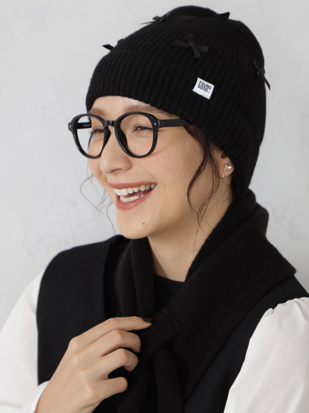 FOUND GOOD(FOUND GOOD)のニットキャップ/ビーニー「リボンニットワッチ」を使ったコーディネート