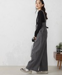 肩ベルトを長めにデザインしたデニムサロペット。 ハイウエストが脚長効果を発揮し、ややルーズなシルエットがボディラインをほどよくカバーします。