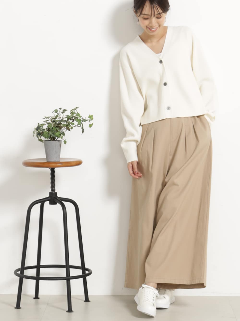 今季のワードローブに一着は揃えたい、ゆるシルエット×ショート丈のVネックニットカーディガン。 ボリュームのあるボトムともバランスよく決まり、脚長効果も叶えてくれます