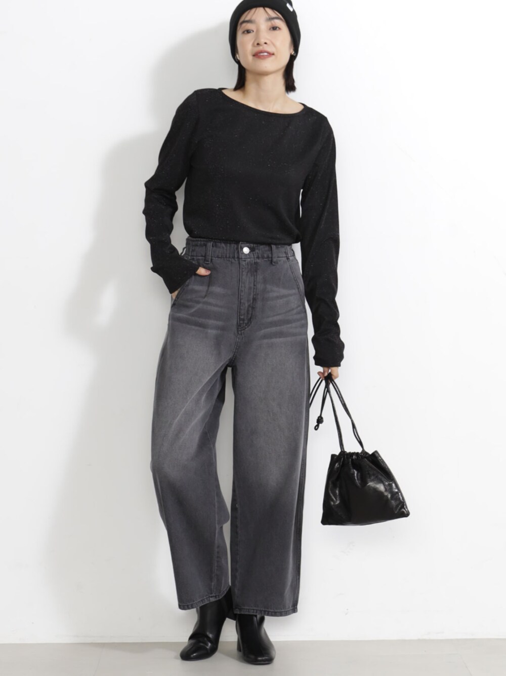 ゆったりしたワイドシルエットがトレンド感のあるデニムスタイルを演出します。 5ポケット仕様で本格的な見え方ながら、バックゴムでリラックスできる穿き心地です。