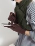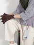 柔らかな風合いで温かみのあるニット生地。 手首部分はリブ編みでフィット感を高めています。 人さし指に穴があいているため、手袋をしたままスマホやタッチパネルを操作できる便利なデザイン。 ロゴ入りのピスタブがさりげないワンポイントです。