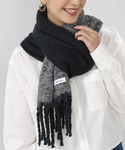 トレンド感のあるカラーブロック仕様のマフラー。 ほどよいボリュームと太フリンジも華やかな印象。 物足りなさを感じるシンプルコーデのブラッシュアップに最適なアイテムです。