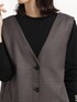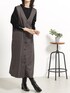 ボタンがアクセントになったVネックのジャンパースカート。 前後どちらでも着用でき、ボタンを開けてロングジレとしてもコーディネートできる汎用性の高い一枚。