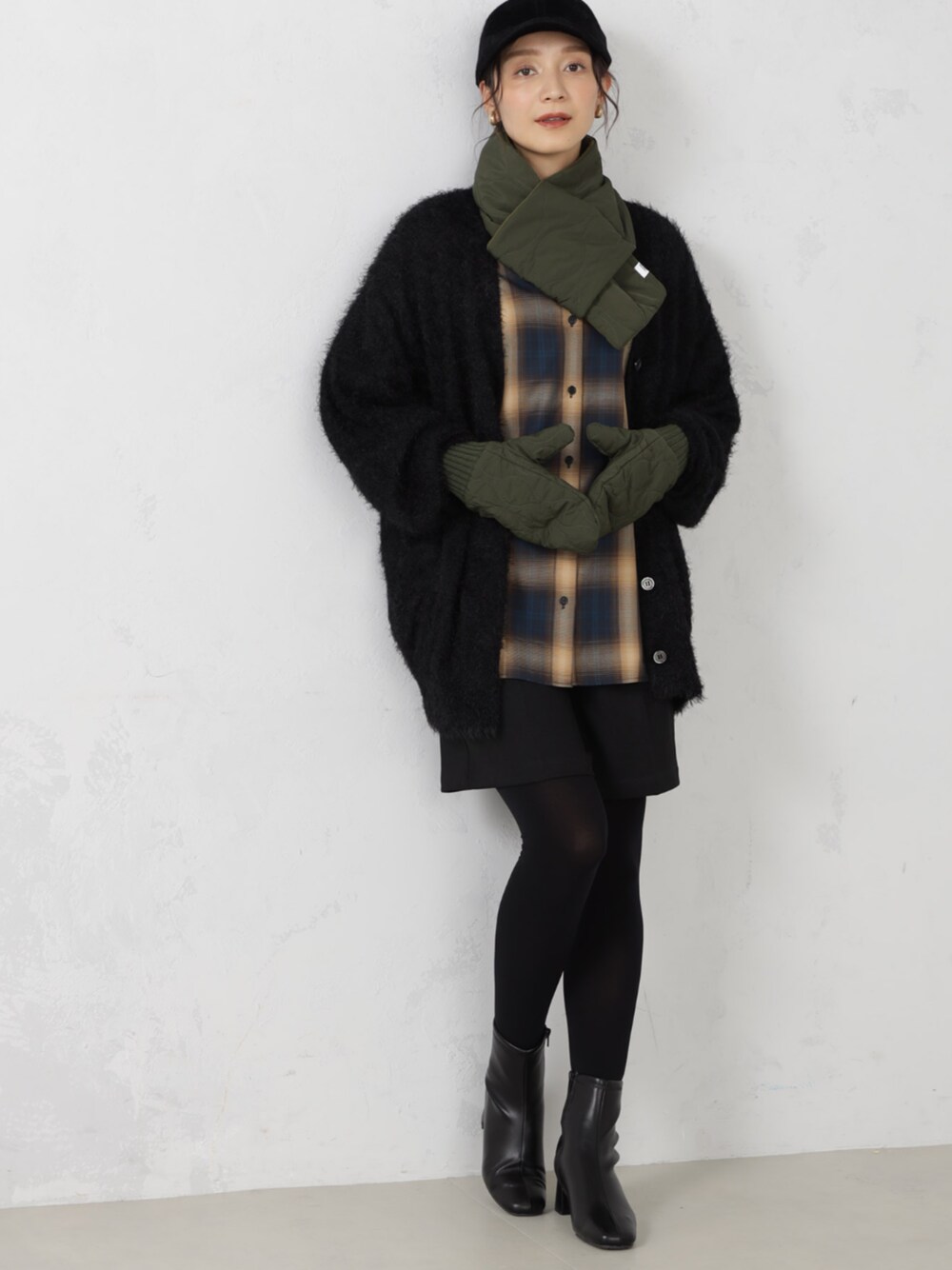 表面はミリタリー調のキルティング生地、肌に触れる裏面はソフトなフリース生地。 発熱機能のある中綿入りで保温性も抜群です。
