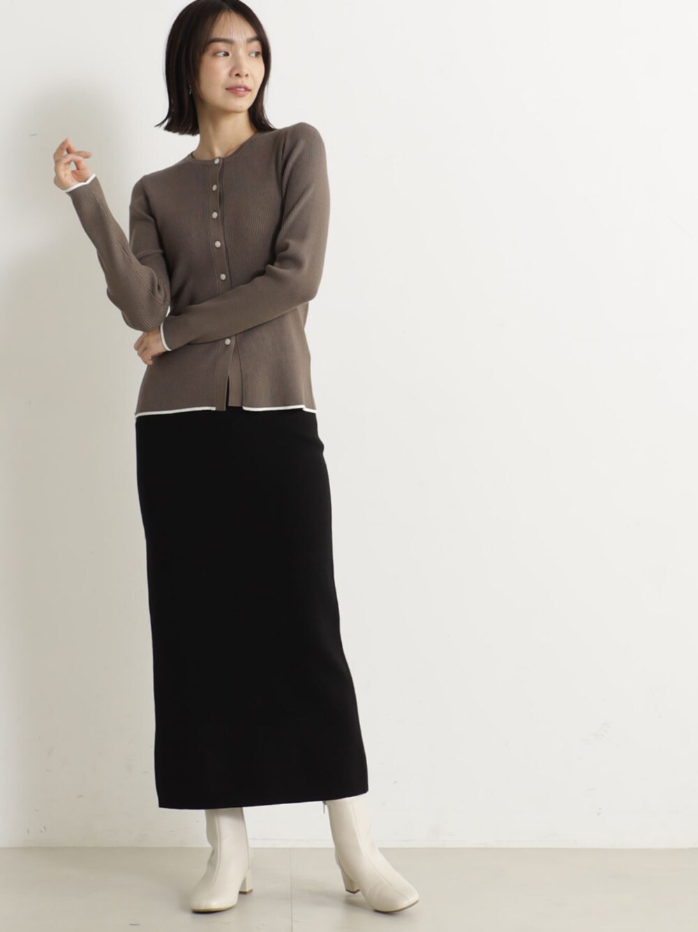伸縮性あるリブ編みニット。 綺麗な表面が特徴で、自宅でのお手入れも簡単な素材。