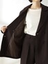 裏地は静電気が軽減される加工が施され、先染め、後染めの加工を組み合わせたポリエステルツイルの生地を使用。 滑らかな肌触りと軽い着心地でデイリーにあわせやすい。