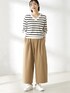 滑らかで動く度に落ち感のあるポリエステルツイルストレッチ生地を使用。 ふんわりとした風合いとストレッチ性が特徴。 裏起毛素材で仕上げた保温性が嬉しいアイテムです。
