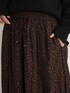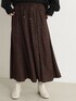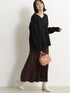 定番のサテンスカーチョに裏地を付けて冬仕様にアップデート。 スカートのフェミニンさと、パンツの動きやすさを兼ね備えた一着。 ニットと合わせると、素材のコントラストで抜け感のあるスタイリングに。 シンプルな装いにはプリントでアクセントをつけて。