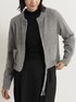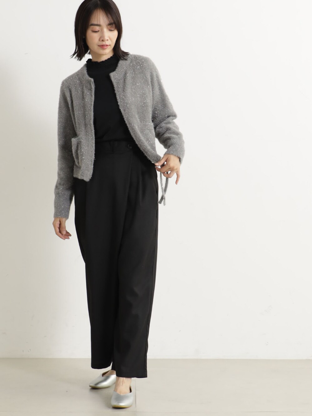 ラメの輝きが際立つ、コンパクトサイズのジップアップカーディガン。 フロントはダブルファスナーで、裾を開けてインナーを見せる着こなしも楽しめる。