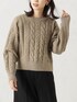 すっきりとしたシルエットの冬らしいケーブル柄のセーター。 パールスタッズをふんだんに散りばめて、華やかな表情に仕上げています。 普段使いしやすいシルエット。