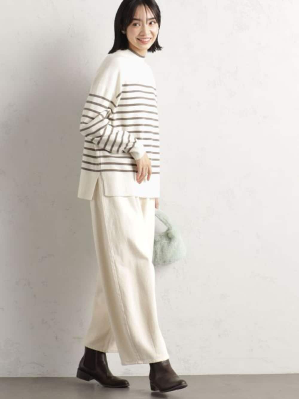 首まわりを優しく包み込むハイネックのニット。 首元と裾はリブに切り替えて、メリハリ感を添えています。 ほど良いゆとりのあるシルエットは、どんなボトムを合わせてもきれいな着こなしに。 裾にはスリット入りで、コーデを軽快に仕上げたい日にもおすすめです 。